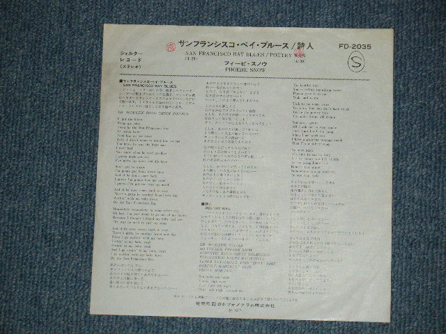 フィービ・スノウ Phoebe Snow - A) San Francisco Bay Blues サンフランシスコ・ベイ・ブルース B) POETRYMAN 詩人 (Ex/Ex+++ WOFC, STPOBC) / 1977 Version JAPAN REISSUE Used 7" Single [Shelter Records / NIPPON PHONOGRAM FD-2035]