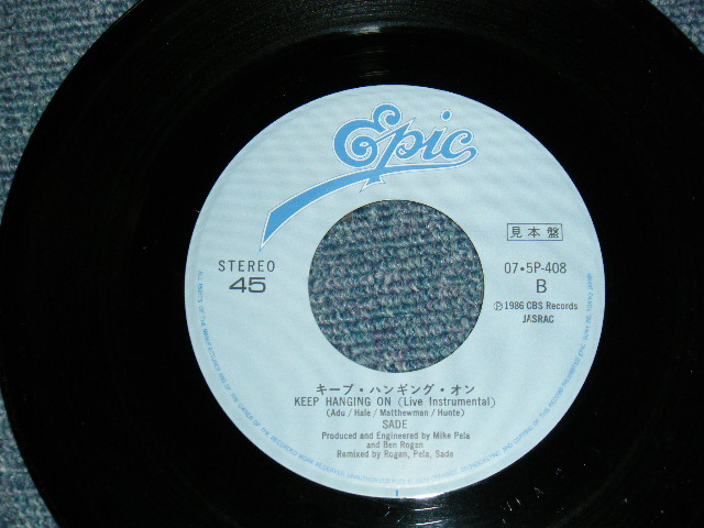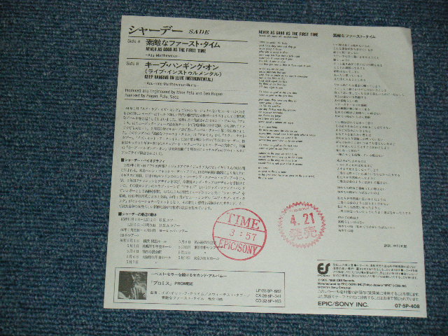 SADEシャーデー - A)Never As Good As The First Time = 素敵なファースト・タイム B) Keep Hanging On (Live Instrumental) キープ・ハンギング・オン (ライブ・インストゥルメンタル) (Ex+++/MINT-) / 1985 JAPAN ORIGINAL "PROMO" Used 7"45 Single[EPIC SONY 07・5P-408]