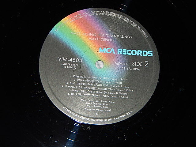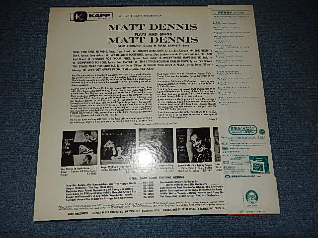 MATT DENNIS マット・デニス - PLAYS AND SINGS MATT DENNIS (Ex++MINT-) / 1979 Version JAPAN REISSUE Used LP with OBI[MCA / VICTOR VIM-4504(M)]